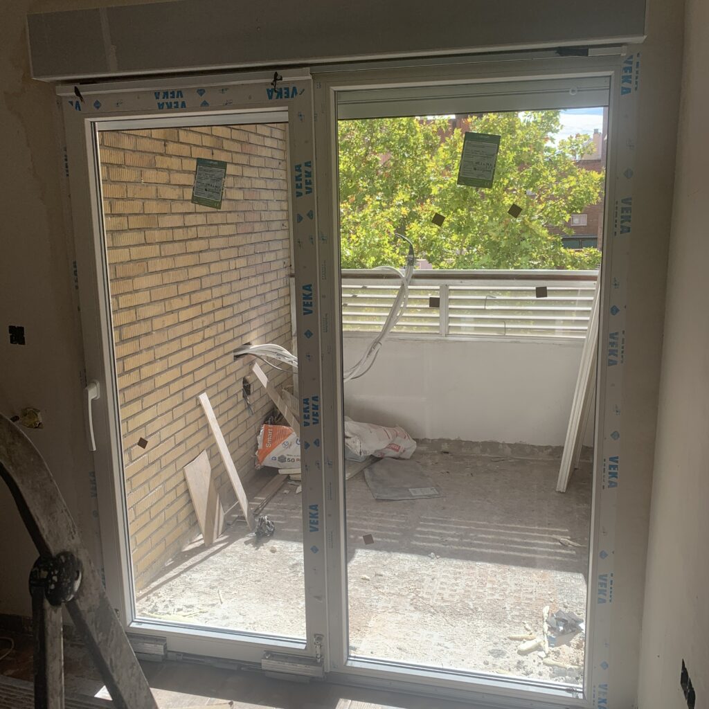 - Sustitución completa de las ventanas existentes por modelos de alta eficiencia energética con doble acristalamiento 6+14+4 Planitherm XN con intercalario térmico y perfil de PVC VEKA serie Softline DJ 70 mm, reduciendo pérdidas de calor y mejorando el aislamiento acústico.